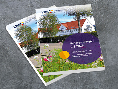 Ab Montag, den 30. März 2026, ist unser Frühjahr-Programmheft überall in Dachau - und selbstverständlich auch in Ihrer städtischen Volkshochschule in der Dr.-Engert-Straße 5 erhältlich. Lassen Sie sich inspirieren.
